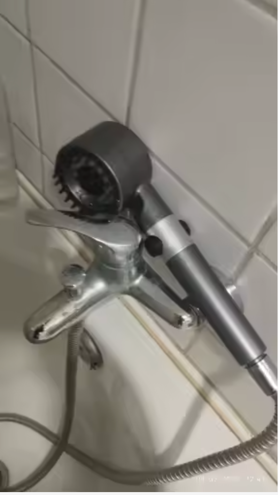 The "Yuck" Factor: The core of the visual proof is the PP Cotton Wand housed inside the shower handle