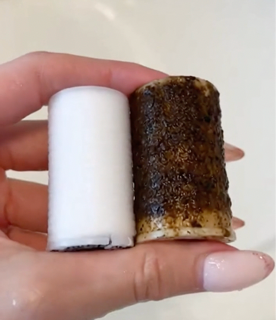 Transformation: This wand starts pristine white and slowly degrades over 30 days, turning yellow, then brown, then black as it traps rust, sand, algae, and pipe scale down to 5 microns.